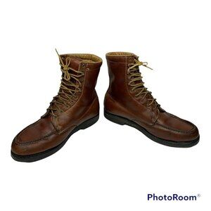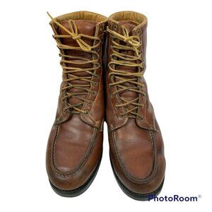Preowned pair of Vintage Dexter Men's Logger Boots Size 9W Armortred Soles Rugged Leather Lace Up USA 740583