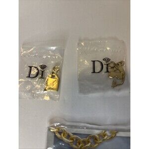 This vintage Diamonds International charm bracelet features a variety of charms including a Cruise ship, scuba gear, a shopping bag, a hat and anchor. The bracelet is in gold color and boasts a lobster closure for easy wearing. With a theme that includes nature, vehicles & transportation, vacation, inspirational, bohemian, travel & places, sea life, hobby & craft, retro, beach, luck, fairytale & fantasy, and fashion & costumes, this bracelet is perfect for anyone who loves unique and whimsical accessories. Perfect for adding a touch of adventure to any outfit.
