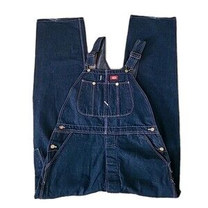 Vtg Dickies Overalls Mens 38x34 (38×33) Blue Denim Bib Carpenter Workwear USA