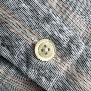 Stylish Dior shirt with light blue stripes. Ideal for casual outings. Comfortable and elegant design. Smoke and pets free, sign of faded aroun collar, otherwise looks good. Pit to pit 24”, collar base to bottom seam 27”.