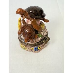 Vtg Direct Connections Co. Sea Turtles Hinged Trinket Box