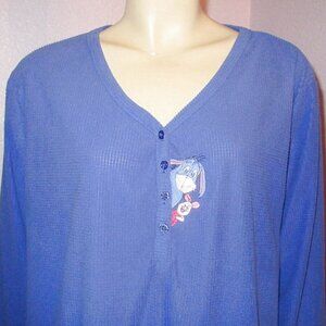 Vtg Disney Eeyore Waffle Knit Top Size 3X Piglet No Pooh Soft Embroidered Therma