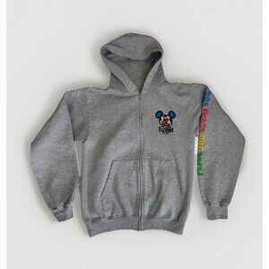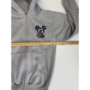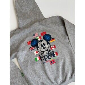 Vtg Disney Epcot One Mouse One World Grey Zip Up Hoodie Sweatshirt Size Small