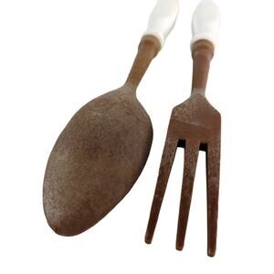 Vtg Disney Gourmet Mickey Mouse Serving Salad Fork & Spoon, Ceramic Handle Japan