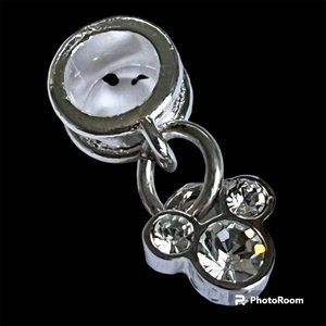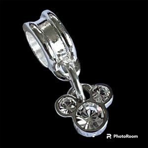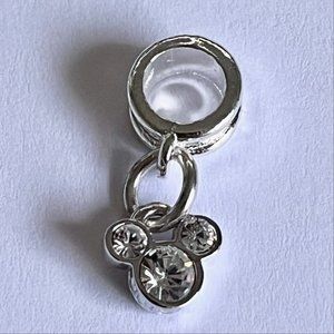 Vtg Disney Mickey Mouse Charm European Bead Slider SilverPlated Austrian Crystal