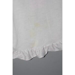 Colors still vibrant with typical pilling throughout. Sweet print of Minnie with balloons in a pink, blue, and yellow motif. Flutter sleeves and ruffled hem have pink polka dot print. A great piece for collecting or wearing.