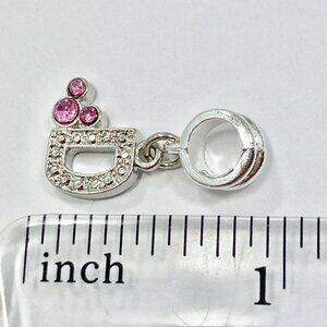 Vtg Disney Pink Crystal Mickey Mouse Ears European Slide Charm Initial Letter D