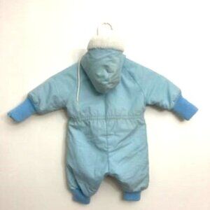 Vintage Disney Sears Winnie the Pooh Hooded Baby Bunting. Snow Suit. Size S. 15-20 Lbs. Light Blue. Good condition - normal signs of wear/age - some discoloration on front - please see photos.