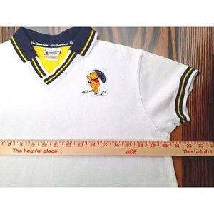 The XL size, 20" across x 21ish" length, shirt is part of the authentic park apparel and has a solid pattern, making it a basic yet stylish addition to any wardrobe. Its vintage style adds a touch of nostalgia, and it's a great piece for collectors. Get this unique Winnie the Pooh polo shirt now!