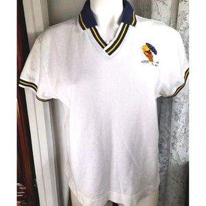 Vtg Disney World Womens Winnie the Pooh White Embroidered Captains Polo Shirt XL