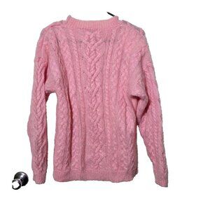 Vtg Distinction Sweater Sz L Mohair Blend Pink Cableknit 90s Grandmacore Stretch