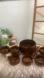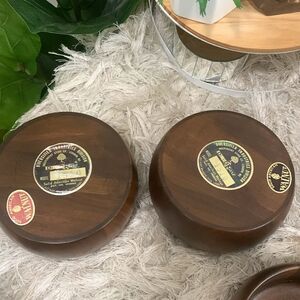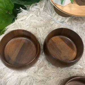 Vtg Diversified Industries Division Solid Walnut Salad Bowl Set 7 Bowls & Tongs