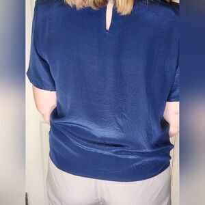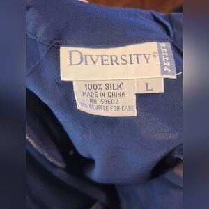Vtg Diversity LP Navy Blue 100% SILK Shrtslvs Women’s Top Blouse