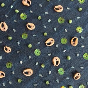 Vtg Doctor Bag Blue Satin Seashell Sequin Wood Top Handle Tote Retro Funky