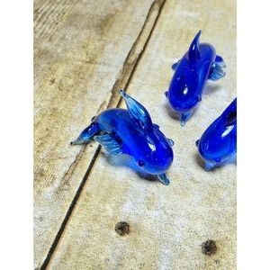 Vtg Dolphins Blue Glass Set of 3 Diving Dolphins (b9)