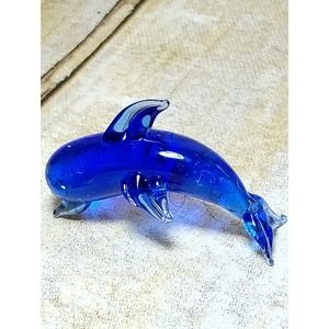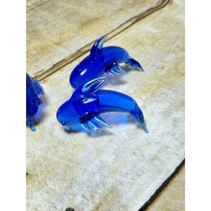 Vtg Dolphins Blue Glass Set of 3 Diving Dolphins
