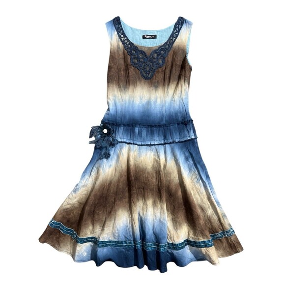 Vtg Domin y2k dark fairy grunge dress blue brown Hippie Tie Dye