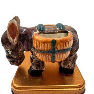 Mid-Century decor, hand-painted ceramic burro/donkey succulent planter/toothpick holder showcases charming vintage craftsmanship. Its intricate details and vibrant colors evoke a nostalgic allure for collectors.
