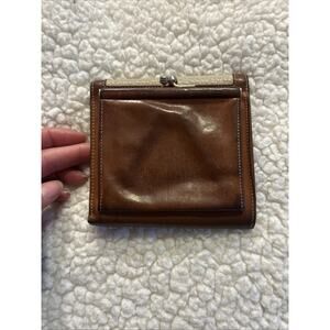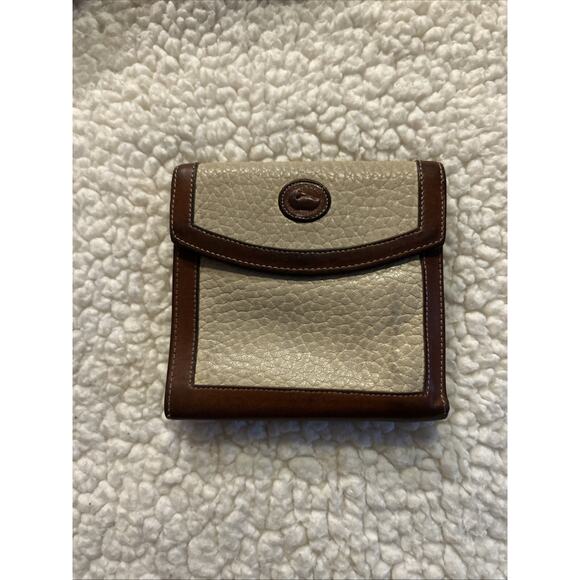 Vtg Dooney & Bourke French wallet Change Bone & British Tan Trim Kisslock small