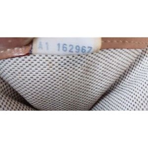 Good vintage condition: Some scratches on leather, dark marks on bottom. Inside bottom soiled, pen mark inside zip pocket.
