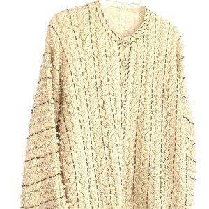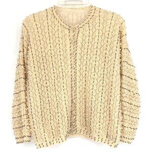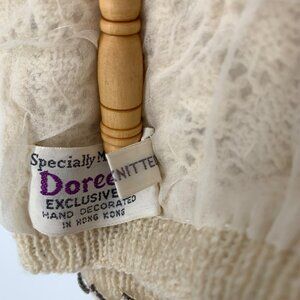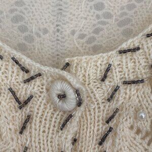 Vtg Doreen Hand Knit Cardigan Sweater Ivory Seed Bead Pearl Lined EU 40/ US 8-10