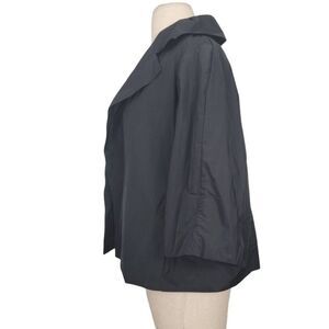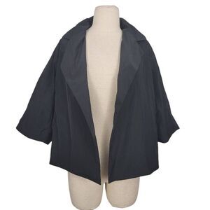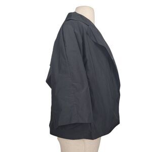 Vintage Dorothee Schumacher Black Nylon Open Jacket, collared, Relaxed Oversized Fit, pockets, 3/4 wide sleeves, has 2 belt loops on back for a thin belt, 100% Polyester feels like Nylon.