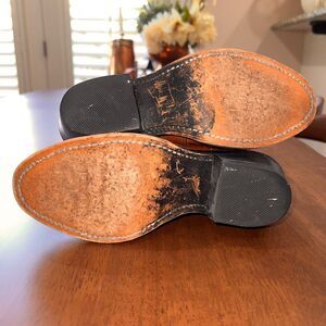 These boots are in a good condition. The uppers look excellent with only some minor creases and scuffs. The soles as well as the heel caps have very little wear (see pics), soles never been re-stained. A great pair of quality