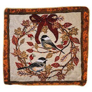 Beautiful Tapestry style pillow cover. 17" Square, double sided, fall and spring birds. Fall chickadee and winter Cardinal. Satin cord trip, hidden zipper. Excellent pre-owned condition. No stains, dirt or other marks. Cover ONLY, no pillow form. Interested, make an offer. From a smoke an pet hair free home. Fast shipping.