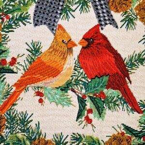 Vtg Double-sided Tapestry Bird Cover Winter Cardinal Fall Chickadee Satin Cord
