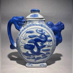Vtg Dragon Design TeaPot Decorative White Blue Collectible Made In China