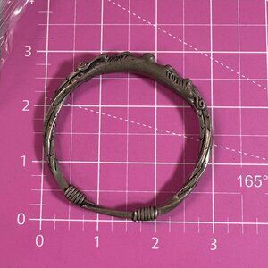 Vtg Dragon Head Double Oriental Theme Tibetan Handmade Silver Bangle Bracelet