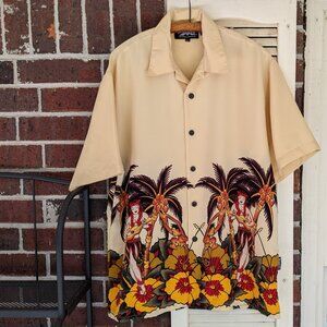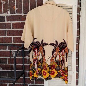 Vtg Dragonfly Clothing Company Island Print, Button-Down Shirt Sz L