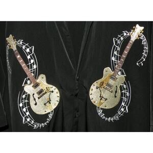 Vtg Dragonfly Men’s XL SS Button Shirt Black Polyester Embroidered Gaucho Guitar
