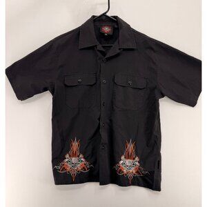Vtg Dragonfly Roadhouse Mens M Skull & Crossbones Button Shirt Y2K