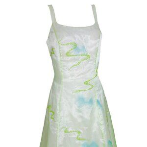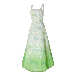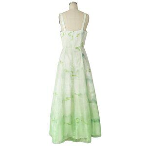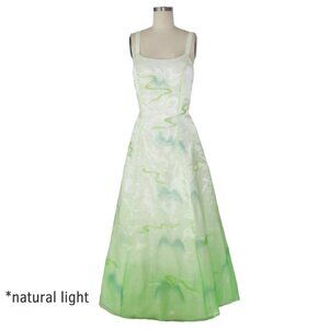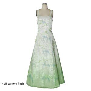 Vtg Dreamy Airbrush Landscape Print Gradient Mesh Overlay Ball Gown Prom Dress