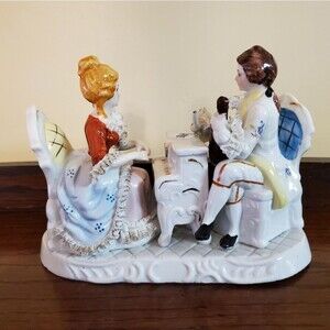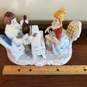 Vtg Dresden Porcelain Lace Figurine Victorian Couple Playing Violin and Piano