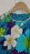 Vintage Handmade Dress Homemade Hand Sewn Floral Hibiscus Cotton Crepe Blue Party Dress Small OOAK