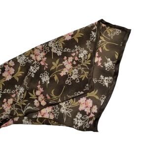 Vtg Dress-U-II By Sharon Blouse Womens 3X Plus Brown Pink Floral Asymmetrical