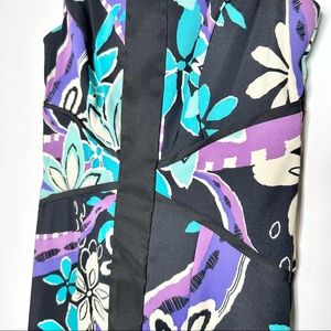 Vtg Dressbarn Floral Design Dress Sz S 4 Polyester Black Purple Sleeveless 38” long (shoulder to bottom hem) half zip back