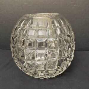 Vtg Duncan Miller Clear Glass Bowl Vase Candle Holder Cube Block Beveled Buttons