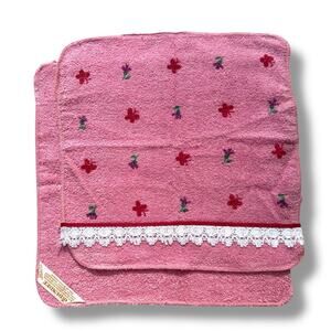 Vtg Dundee Brand Lace Trim Pink Face Cloth Cotton Floral Butterfly Cottage New