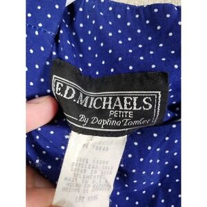Vtg E.D.Michaels By Daphna Tamler Dress Womens Small Blue Polka Dot Fit & Flare