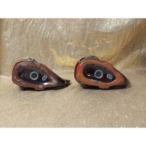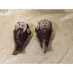 Vtg EFCCO Japan MARINELAND Whale Salt & Pepper Shakers Redware Brown Drip Glaze