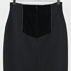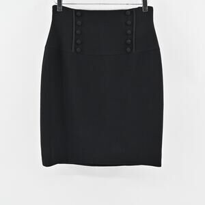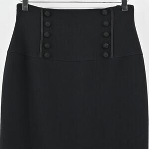 Vtg ESCADA Skirt Sz 38 Solid Black Wool Velvet Sailor Button Pencil Quiet Luxury