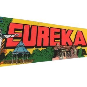 Vintage EUREKA SPRINGS Flag Pennant Banner ARKANSAS 25" Christ of the Ozarks 100 Year. Perfect for a bedroom, game room, or man cave.