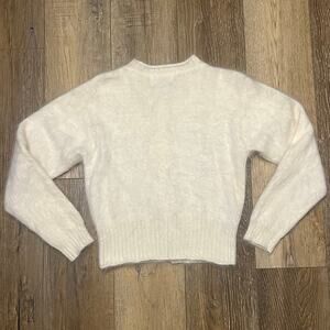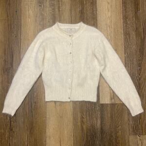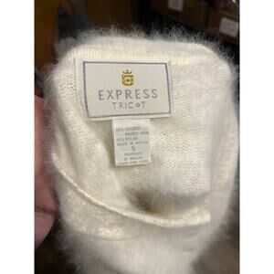 Vtg EXPRESS TRICOT Angora Knit Ivory Cardigan Button Down Size Small Cozy Soft