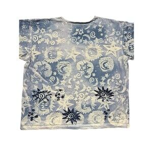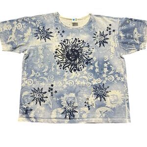 Vtg TShirt EZL Sun Moon Stars All Over Print USA Psychedelic Celestial 90s Sz OS