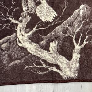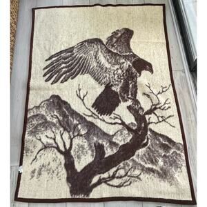 Vtg Eagle Branch Nature Blanket Reversible Brown Cream 62x46 Heavy 80s 90s VG