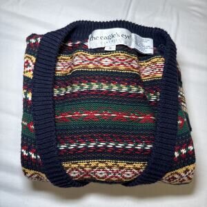 Vtg Eagles Eye Classics Cardigan Sweater Colorful Fair Isle Striped Small EUC