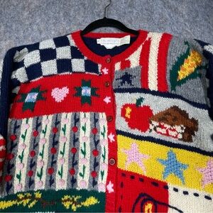 Vtg Eagles Eye Patriotic Americana Hand Knit Novelty Button Up Cardigan - Sz M